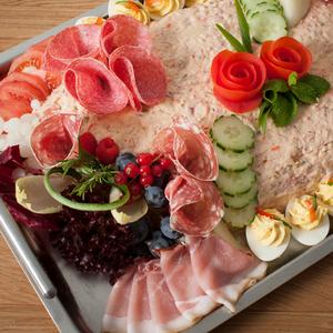 • Biefreepjes in Japanse sesam saus • Aardappel wedges met Provençaalse kruiden en zeezout • Varkenshaas in peperroomsaus • Gebakken scampies in knoflookmarinade • Kip-stroganoff • Rauwkostsalade • Stokbrood en kruidenboter